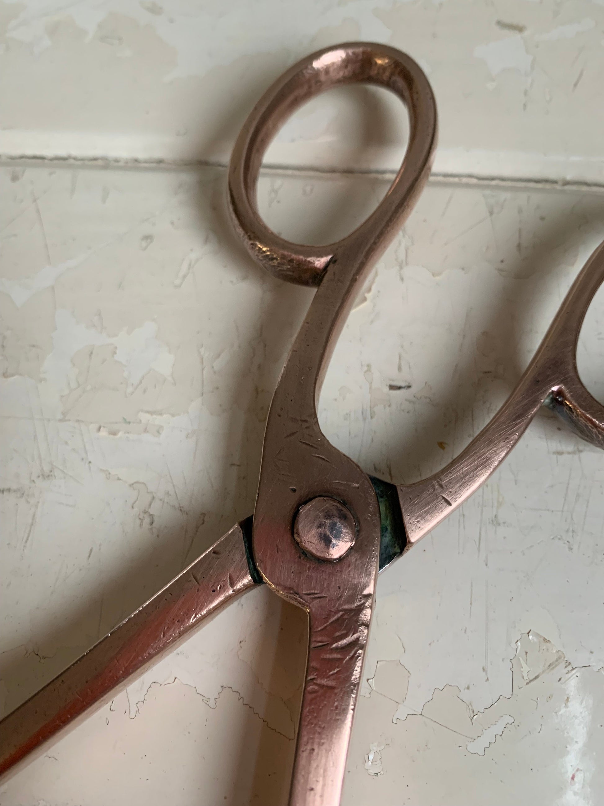 Coal tongs which I believe to be copper. Very useable, great addition to your fireplace and a bit different from the usual brass ones.