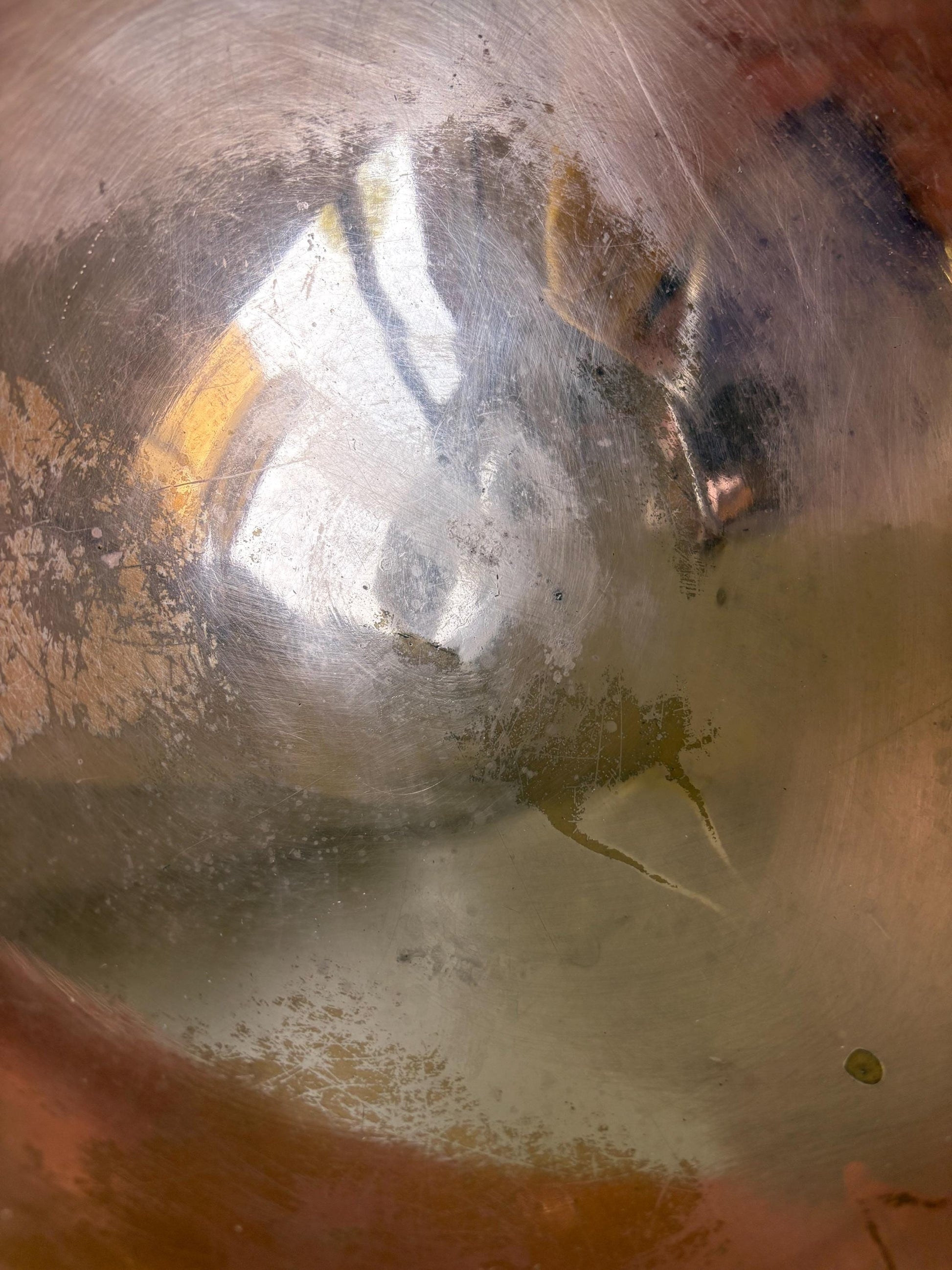 An old item that has been used so please expect wear and tear, marks to copper and a small dent to base of bowl.