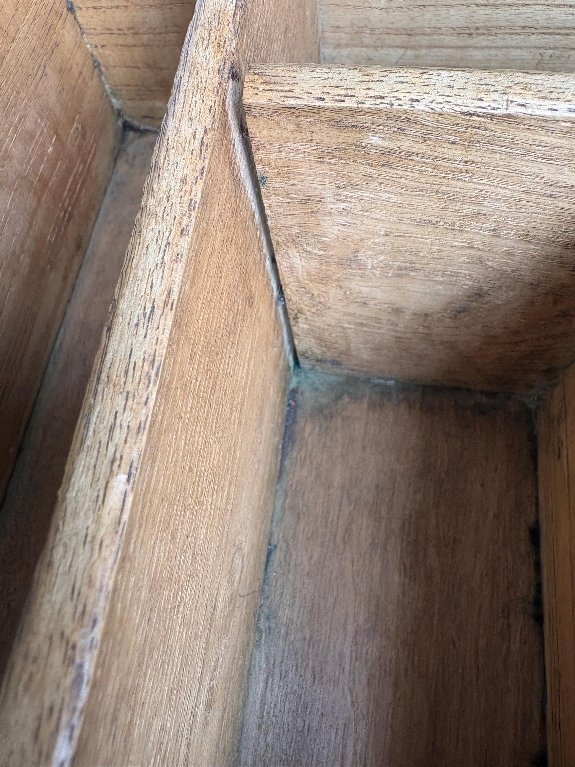 This would have originally had a baize lining as there are some remnants visible underneath the sections.