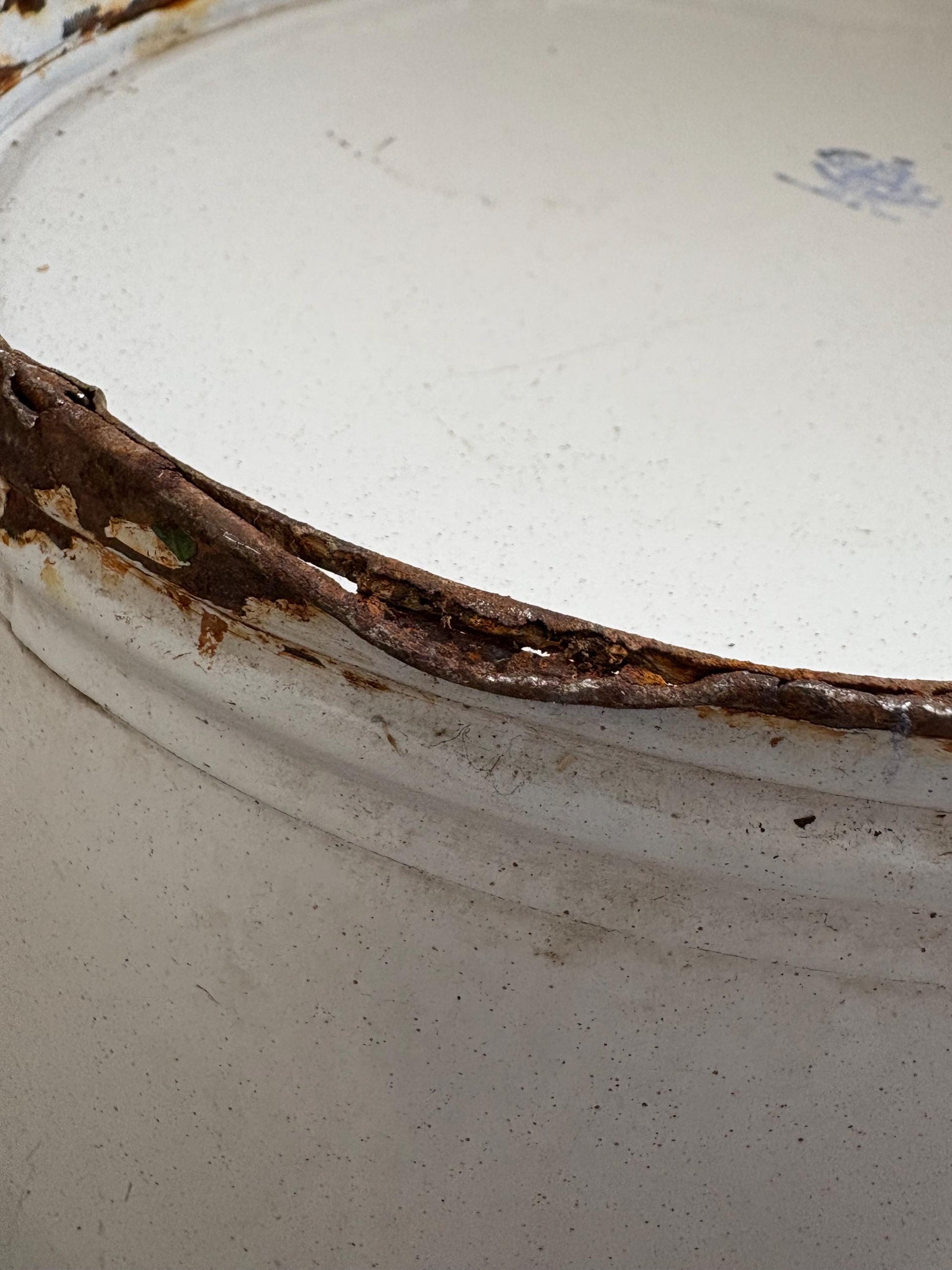 This large bathtub shows signs of wear and tear from use and time, chippy enamelware and rusting. One of the handles is particularly rusted which I have tried to show in photos.