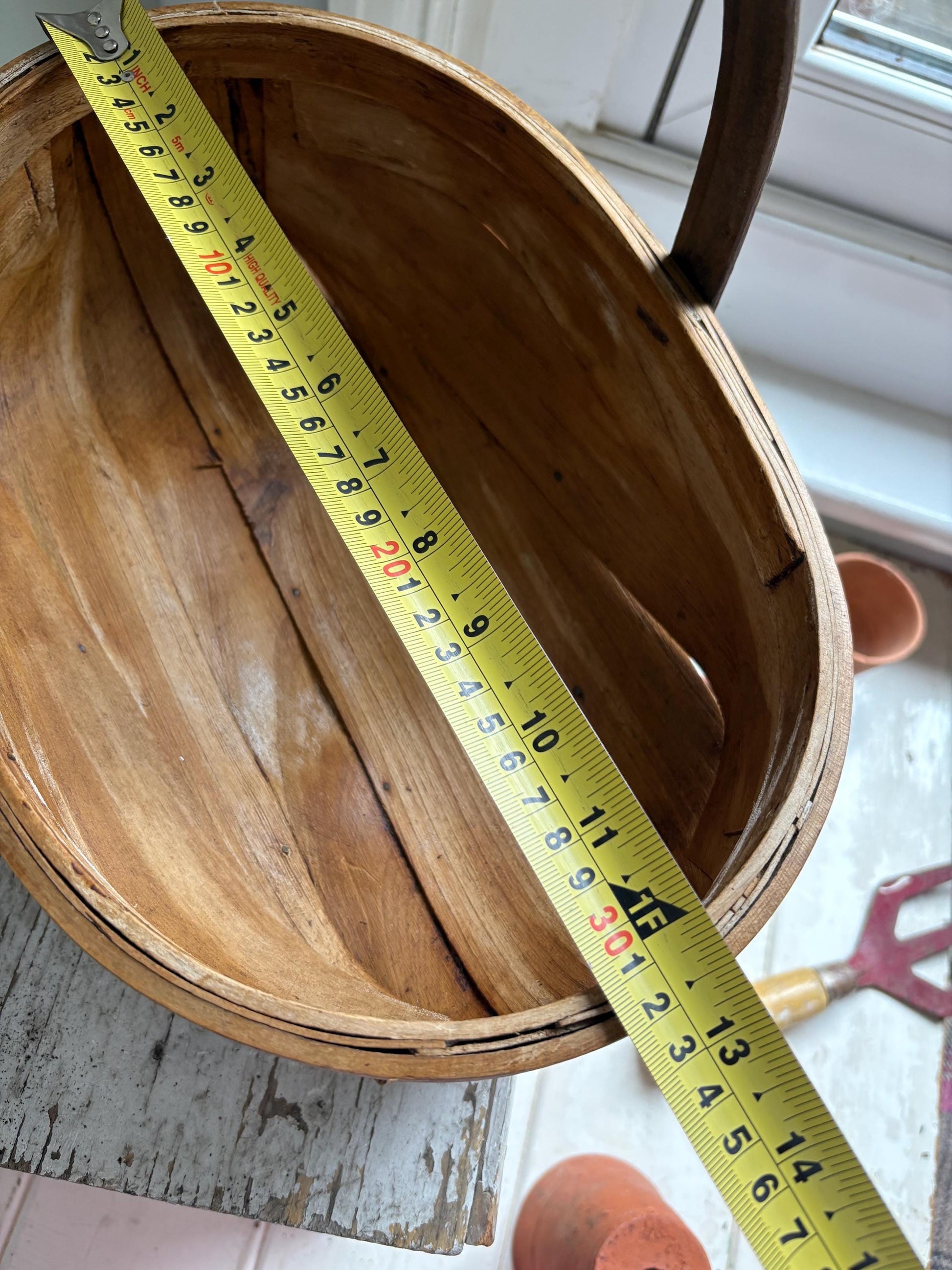 A light weight Trug, does not look particularly old, possibly made from Hazel. Nice condition has been waxed.