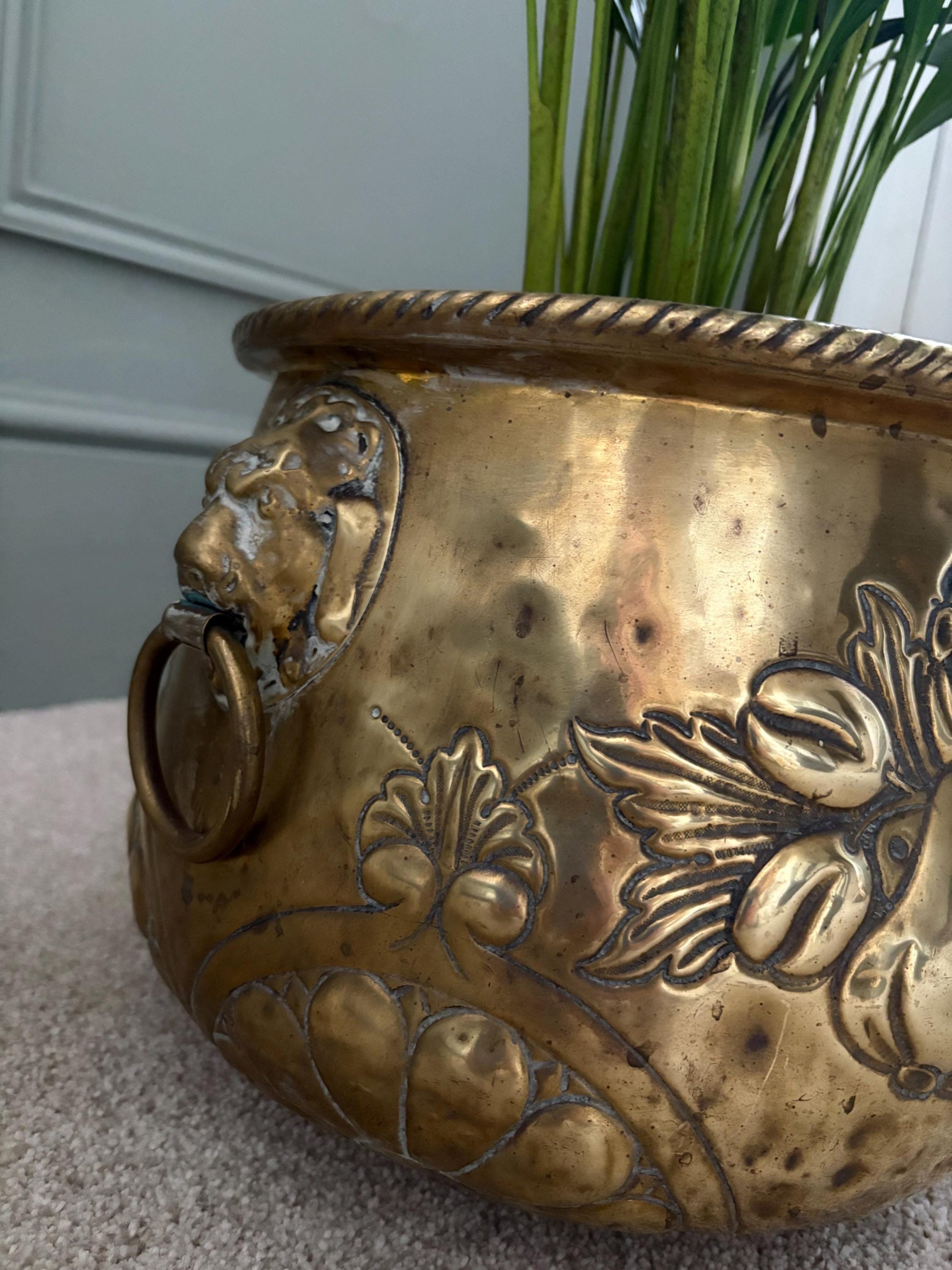Lovely detail of fruits to the body of the planter and nice size lion head handles to the side.