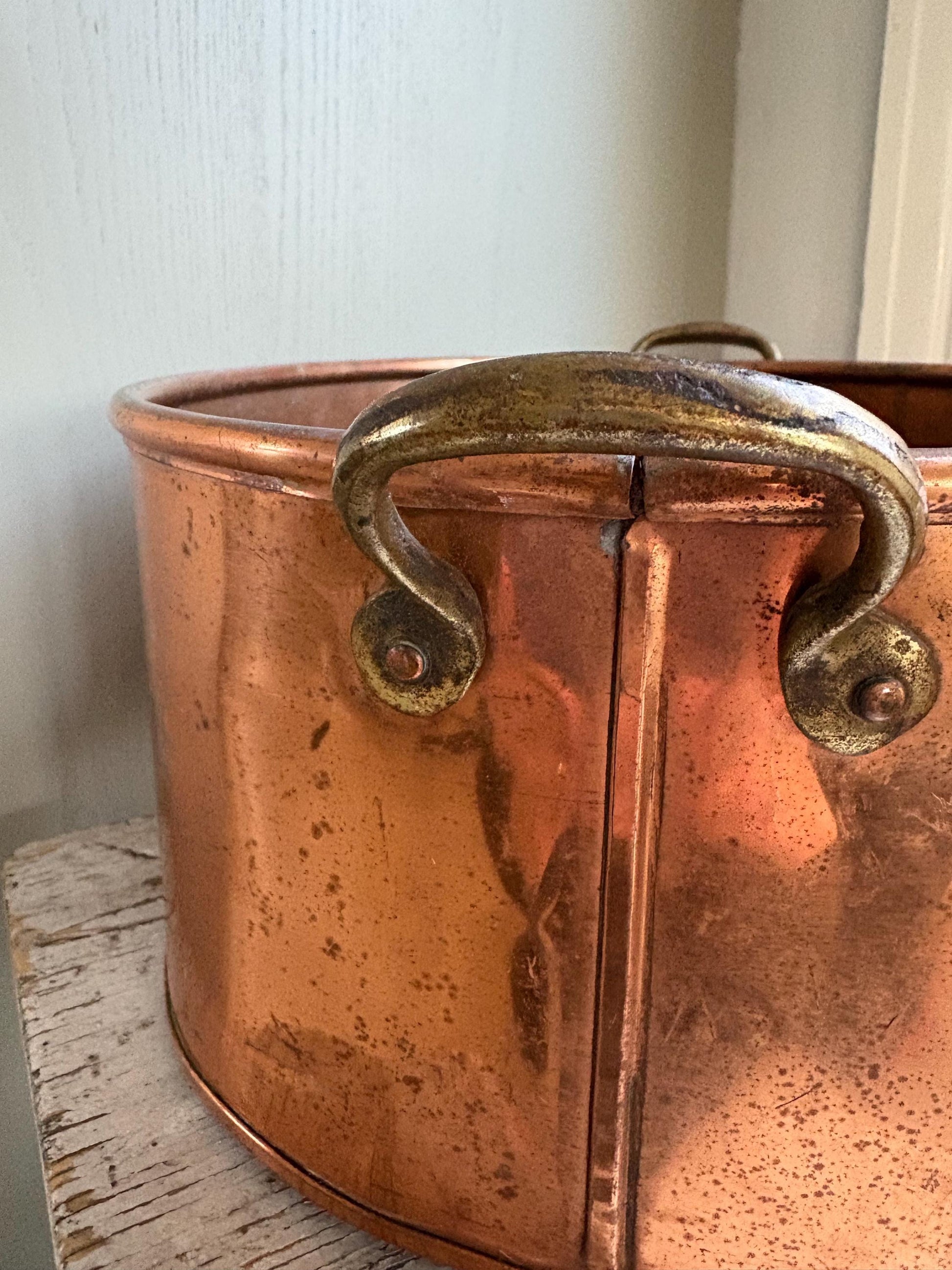 This is an old planter so has wear and tear to it. The copper has surface scratches and marks to it, it also has some dents and dings to it.