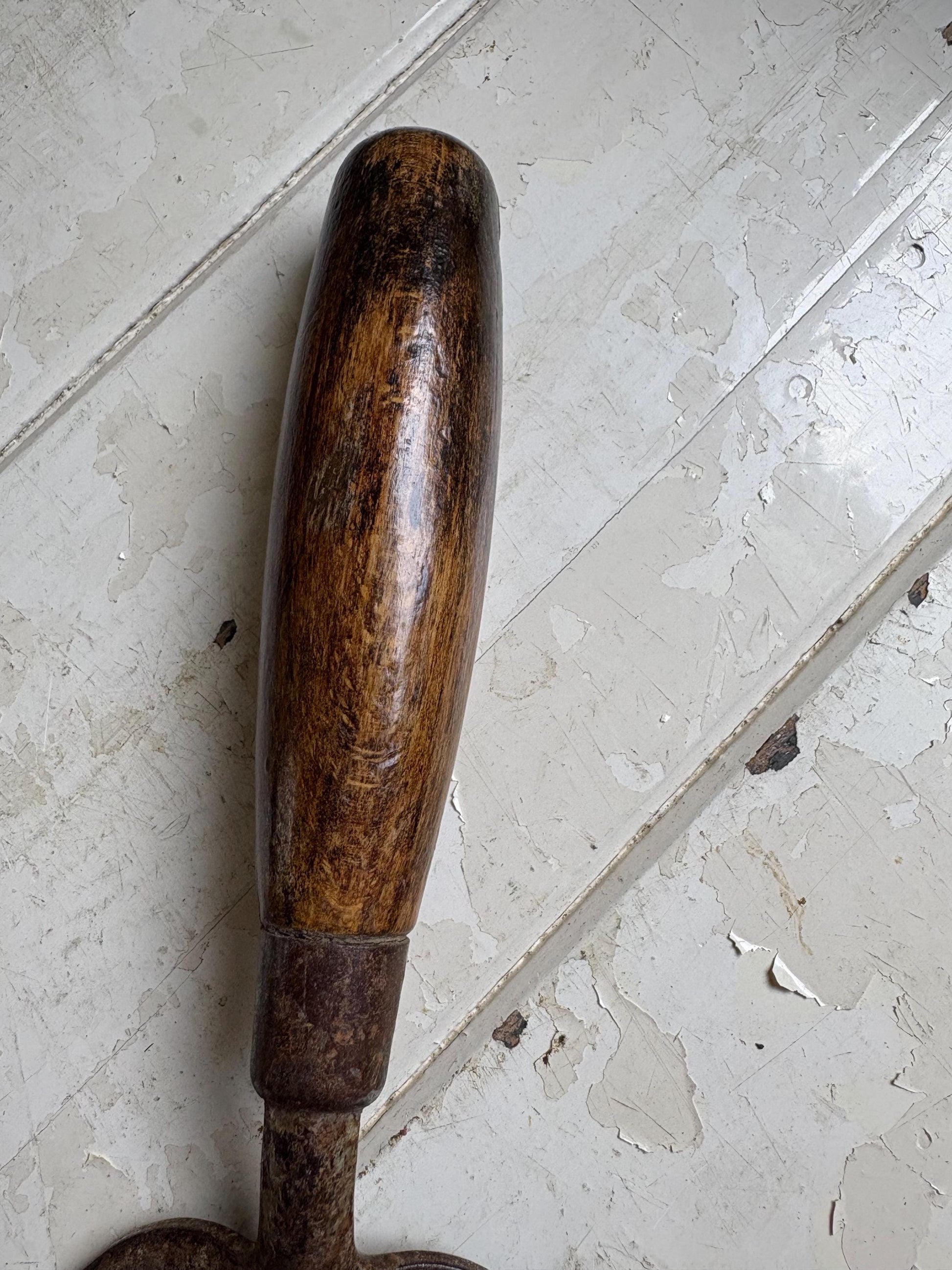 The wooden handle has a lovely dark rich patina.